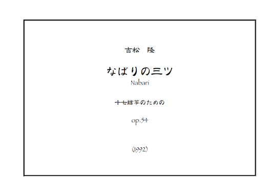 SUBARU op.78, MOYURA op.41, NABARI op.54