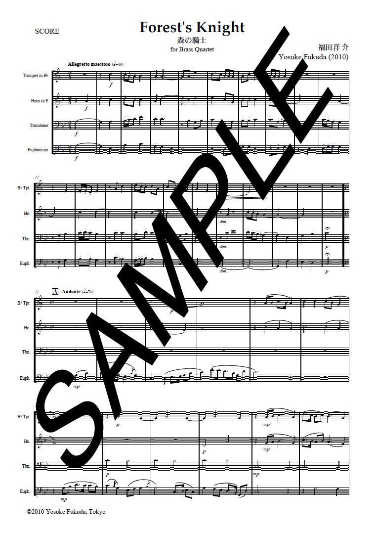 Yosuke Fukuda 『Forest's Knight for Brass Quartet』 PDF Files (Score + Parts)