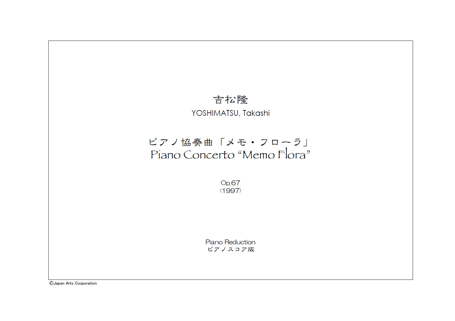 Takashi Yoshimatsu 『Piano Concerto "Memo Flora" op.67 Piano Reduction 』 Score for Play