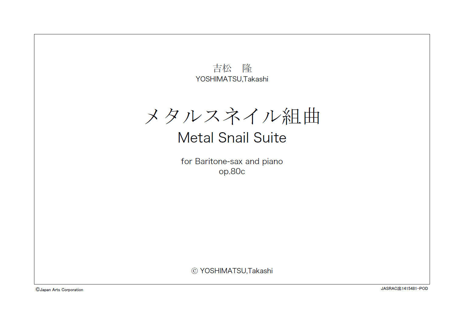 Takashi Yoshimatsu 『Metal Snail Suite for Baritone Sax and piano op.80c』 Study Score