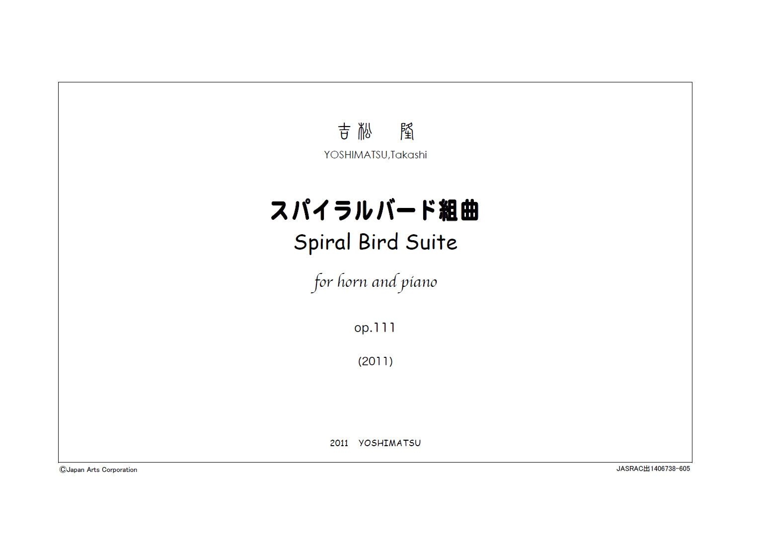 Takashi Yoshimatsu 『Spiral Bird Suite op.111』 Score and Parts